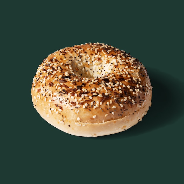 Soft, chewy and thick New York–style bagel topped with onion, garlic, salt, poppy and sesame seeds. Available with cream cheese or butter.